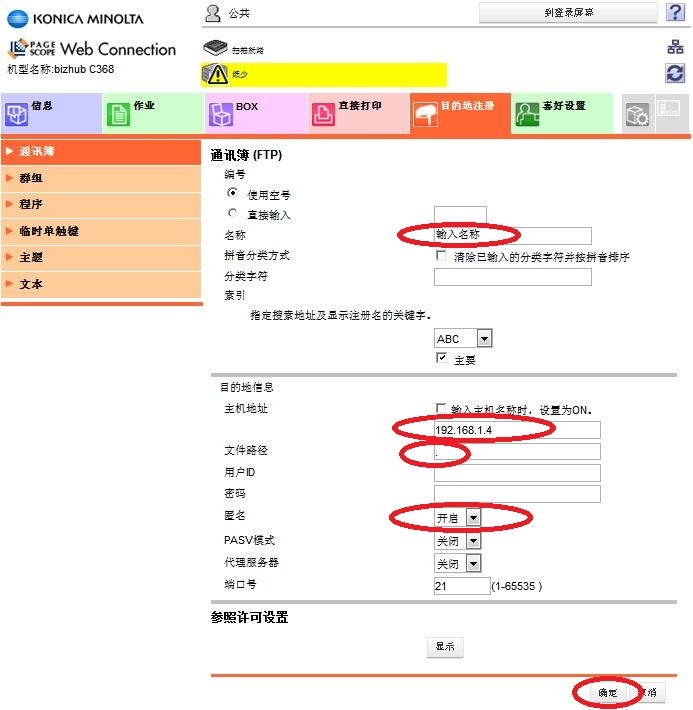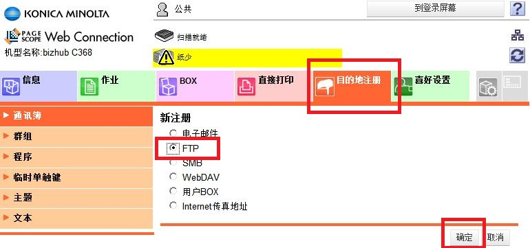 1.柯尼卡美能達復(fù)印機C226|C266 FTP 方式設(shè)置說明