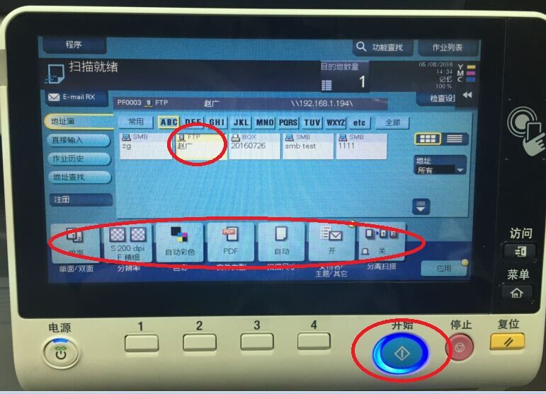 5)選中之前所創(chuàng)建的FTP項,設(shè)置好掃描需求后點擊右下方發(fā)光的藍色開始鍵,回到電腦設(shè)置的文件夾中查找對于圖像即可