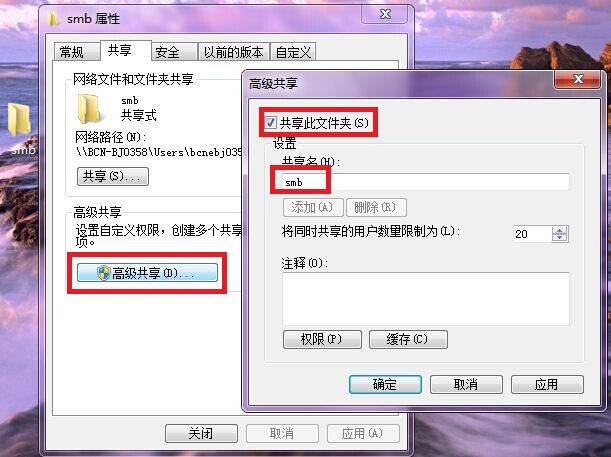 1)PC端設置共享文件夾,共享設置everyone的讀取和寫入權