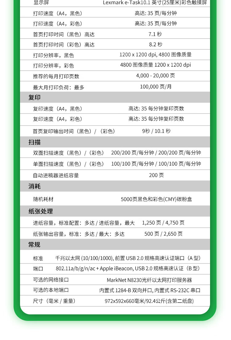 利盟(Lexmark)CX951se復(fù)印機(jī)價(jià)格 彩色激光多功能數(shù)碼復(fù)合機(jī)圖片參數(shù) 超耐用安全打印