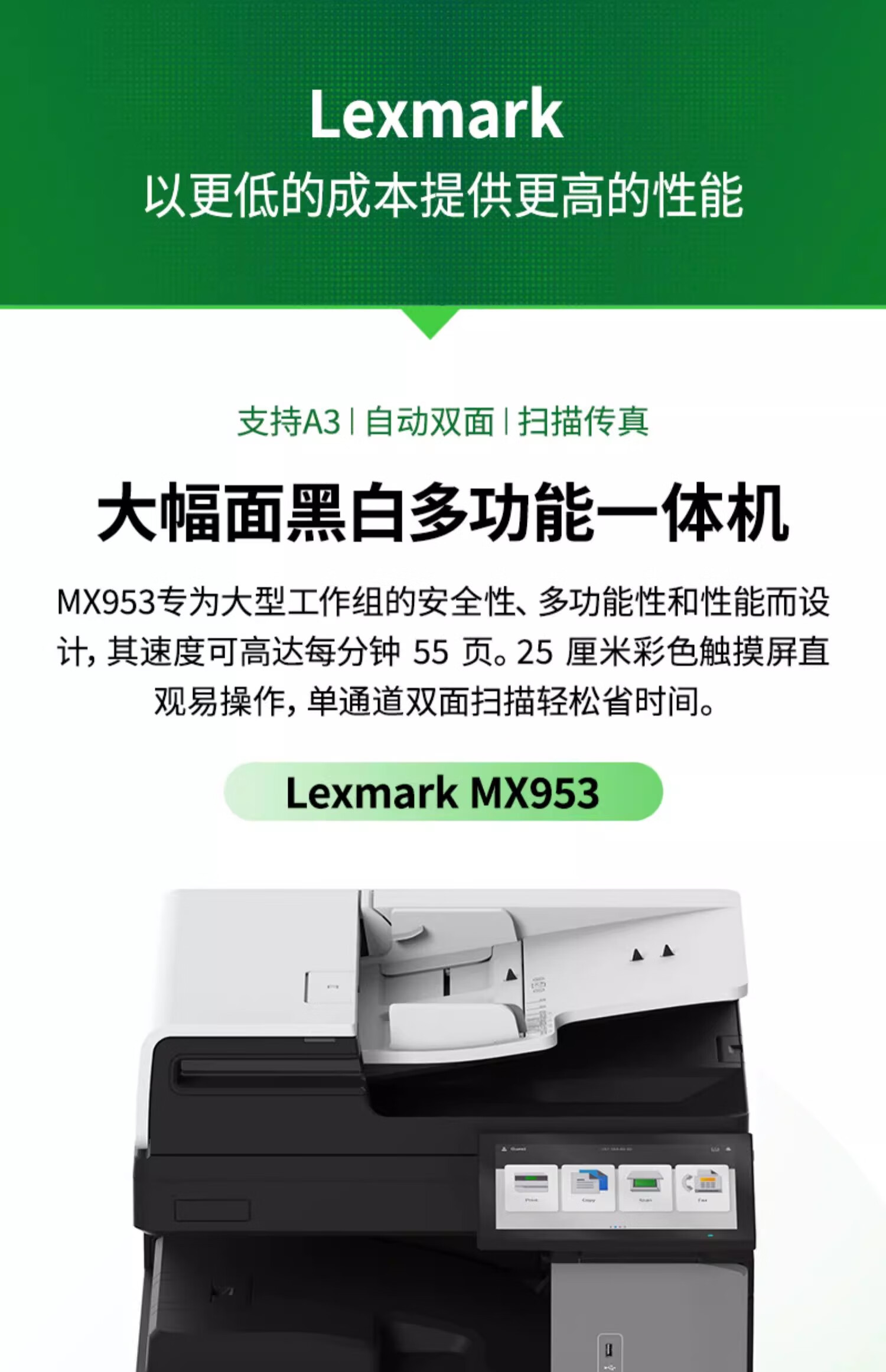 利盟(Lexmark)MX953打印機 A3黑白激光多功能一體打印機價格圖片 55頁/分鐘